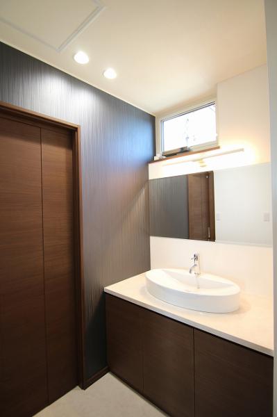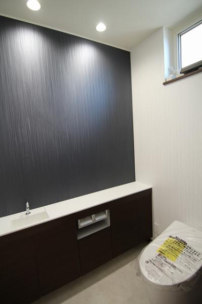 特に従業員の皆さんが毎日使うトイレと手洗いを印象強くまとめて、化粧台は既製品を使わず造作しました。